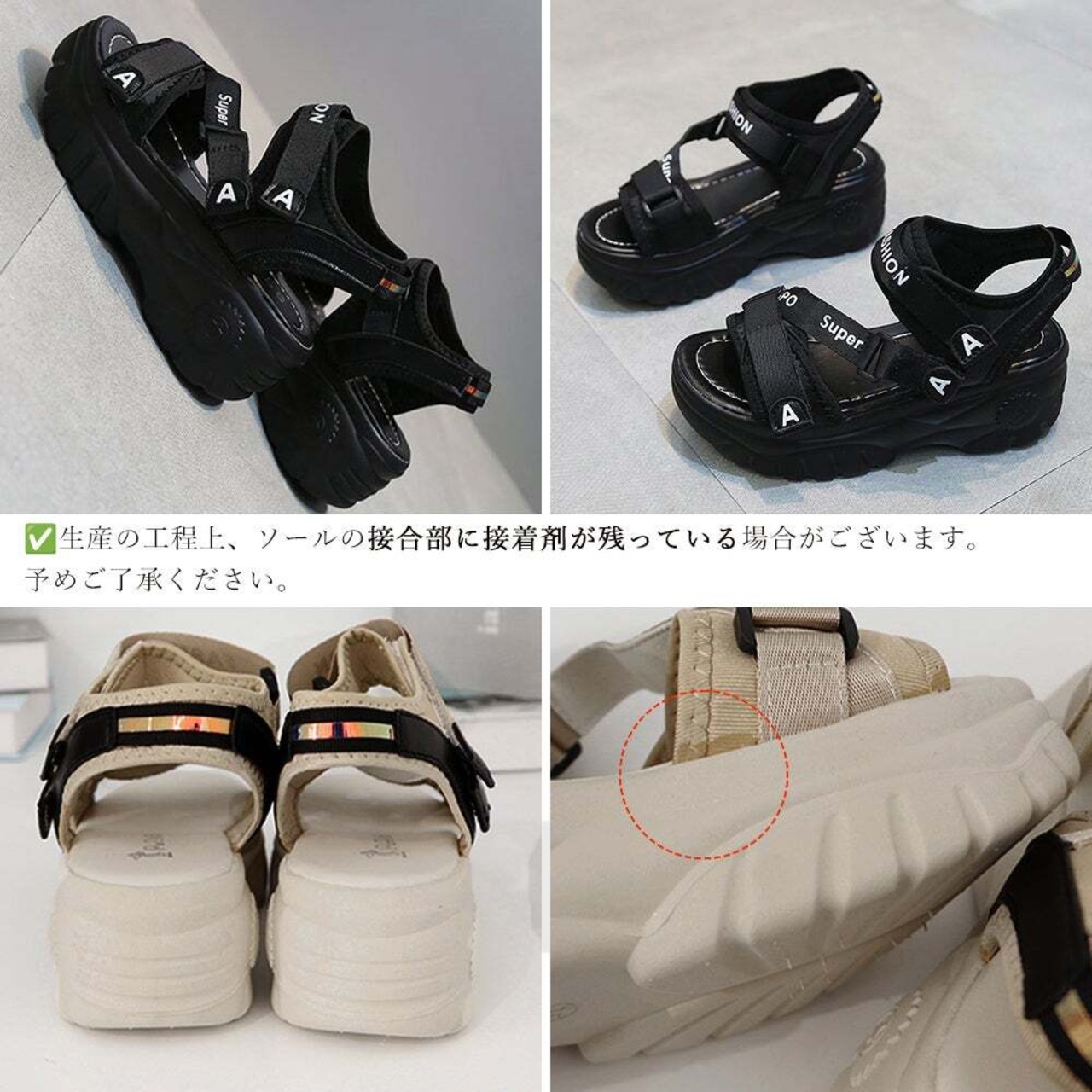 日本倉庫即納】 厚底スポーツサンダル ベルクロサンダル夏